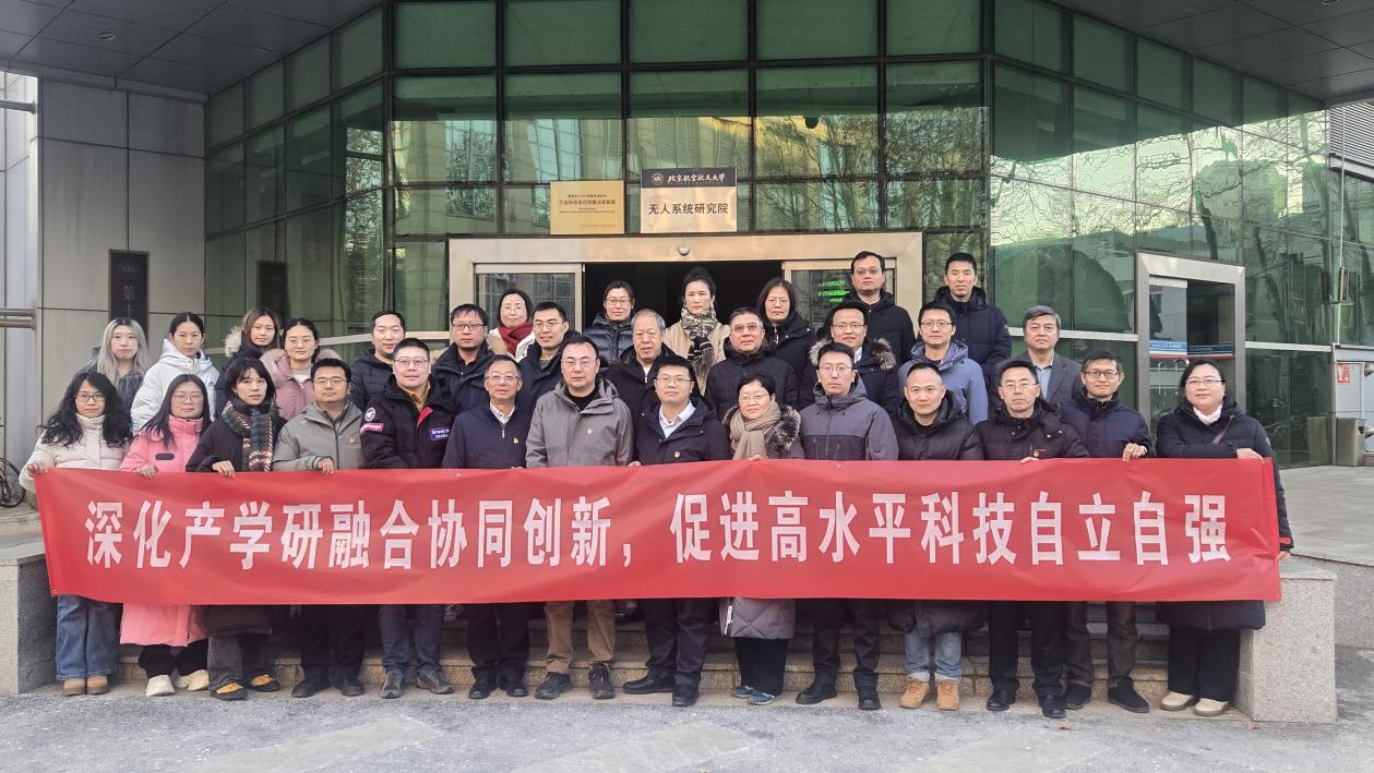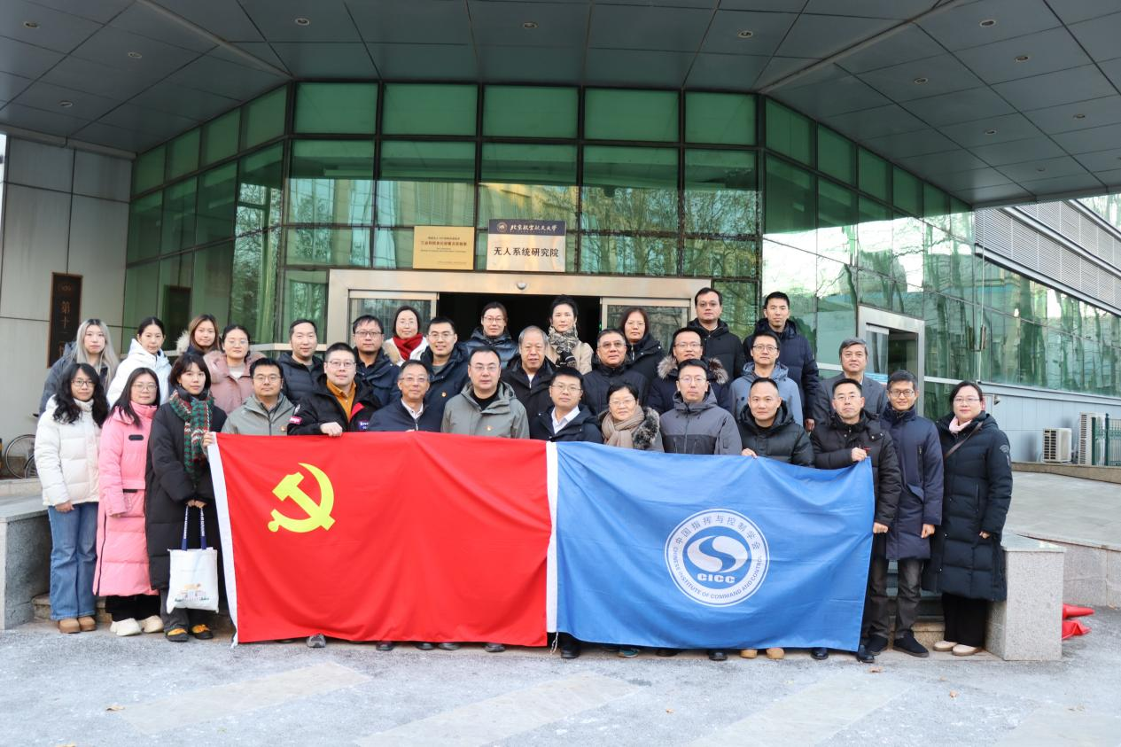 为深入学习贯彻国家关于科技创新与产学研深度融合的重要指示精神,以党建引领业务发展,切实推动高水平人才培养,推动有组织的科研落地生根,2026年1月21日下午,北京航空航天大学无人系统研究院(以下简称“研究院”)与中国指挥与控制学会(以下简称“学会”)联合举办了以“深化产学研融合协同创新,促进高水平科技自立自强”为主题的党日活动。北航无人系统研究院党委书记刘玉战、院长董希旺,学会秘书长刘玉超研究员等相关领导出席活动,双方党员代表、科研骨干及学会秘书处工作人员近40人参加活动。