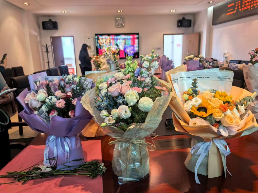 除插花环节外,工会还贴心地为大家准备了精致的糕点和养生热饮,并为每位男同事准备了鲜花,方便他们向家中的“女神”传递节日祝福。细致周到的安排,让每一位参与者都感受到了研究院大家庭的温暖与关怀。